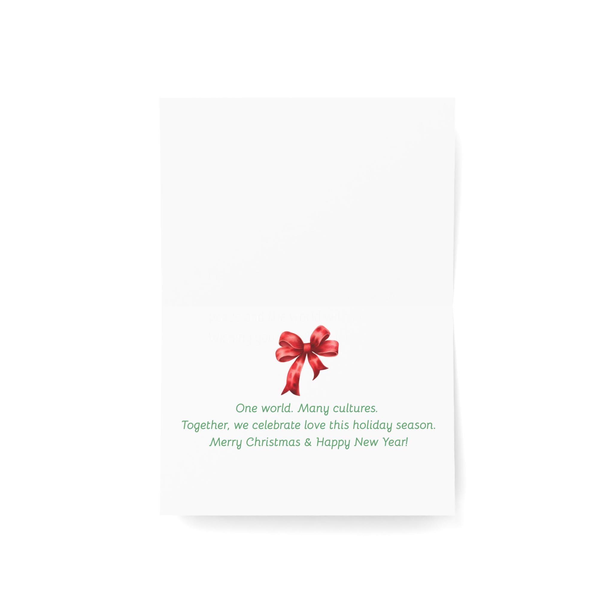 Holiday Greeting Cards Pack of 10 with a 'One World Many Cultures' theme, inclusive and multicultural design perfect for Christmas. The vibrant colors and high-quality paper make these cards stand out. Suitable for anyone looking to celebrate diversity and inclusivity during the holiday season.